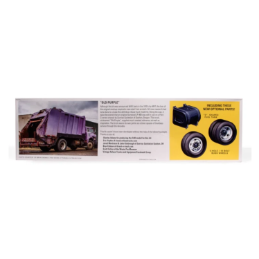 Embora este kit tenha sido anunciado lá na década de 1970 pela AMT, a perda do modelo original exigiu um recomeço do zero. Uma pesquisa totalmente nova teve que ser feita para criar este kit definitivo de modelo de caminhão de lixo. Ao longo do caminho, descobriu-se que um Garwood LP-900 original ainda estava em uso em um chassi Ford Série C pela Sunrise Sanitation de Goshen, Oregon. Este caminhão, apelidado de "Old Purple", forneceu referências e inspiração muito necessárias. O caminhão ostenta sua própria pátina como uma cápsula do tempo de serviços ingratos ao longo das décadas.