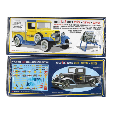 Novo kit de modelo de plástico em escala 1/25 da caminhonete Ford 1934 "Sunoco" Kit 3 em 1 (Habilidade 2) Kit de modelo de plástico 1/25 da AMT. - Caixa totalmente nova - Grade personalizada - Bateria de reforço - Arte em decalque colorido - Embalagem estilo vintage - Produto oficialmente licenciado - Pequenas peças cromadas - Acessórios de exibição, baú de ferramentas - Pneus de vinil preto e eixos de metal - Holofotes, luzes de boom, buzinas a ar - Pneus estampados, rodas de arame - Motores de estoque e personalizados, suporte de motor - São necessários tinta e cimento (não incluídos) - Tubos de escape cromados, rodas personalizadas, pára-choques - Peças moldadas em BRANCO, salvo indicação em contrário - O detalhe de acabamento "cromado" pode ser listrado com tinta prateada - Monte seu kit de três maneiras: Estoque, Personalizado, Serviço.