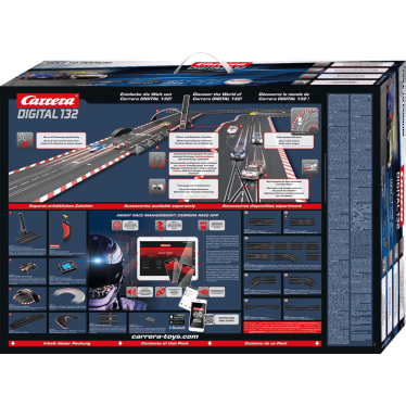Experimente a tecnologia digital com uma escala de veículo de 1/32 com o Carrera: até seis veículos podem dirigir na pista de corrida ao mesmo tempo e ultrapassar os adversários mudando de pista usando o sistema de pista de corrida DIGITAL 132. Graças aos recursos digitais, você pode experimentar a verdadeira sensação de corrida em pistas de corrida particularmente amplas em uma escala de 1/24.
