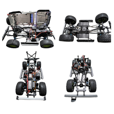Tração 4x4, pneus especiais, sistema de luzes incluso. Fácil de pilotar, passa por pedras e terrenos acidentados com facilidade.