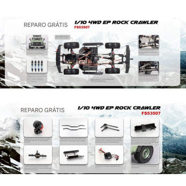 Quase todas as peças são PNP com Axial SCX10 1 e SCX10 II (Geração 2), então não se preocupe com as peças, o fabricante do FS também as fez.