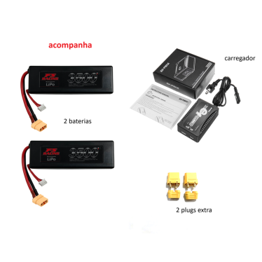 - 2x Plugs XT90 (para caso precise colocar em outras baterias)