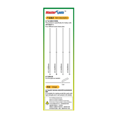 CONJUNTO DE 4 TUBOS DE LATÃO 20CM PARA DETALHAMENTO BRASS PIPE SET MASTER TOOLS MAT 09935