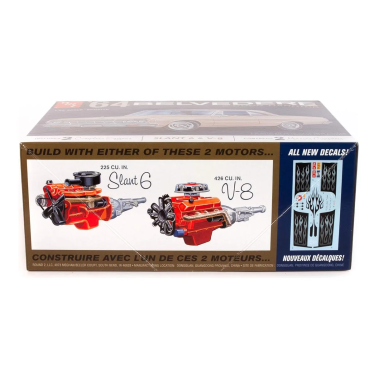 RECURSO EMBALADO: O kit Plymouth Belvedere de 1964 possui 2 motores completos - um 426 cu. Dentro. V-8 e um motor Slant 6 (raro em carros modelo). O kit também inclui TODOS OS NOVOS decalques de chamas e embalagens AMT de estilo vintage.
