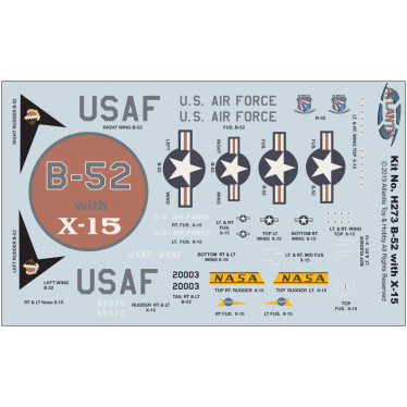 Escala 1/175. Moldado em plástico prateado brilhante e transparente, com base giratória e um suporte adicional para exibir o X-15 (opcional), decalques atualizados, X-15 em escala e opção para adicionar tanques de combustível externos. Decalques para a Força Aérea dos EUA e a NASA. Nível de habilidade 2. Um dos principais passos no programa americano para conquistar o espaço foi o Projeto X-15. Os objetivos declarados do projeto eram descobrir o quão bem uma aeronave pode ser controlada em um ambiente próximo ao espaço e quais problemas são inerentes à reentrada na atmosfera em uma aeronave tripulada. Para ganhar a maior altitude possível sem gastar o combustível do suprimento limitado do X-15, a aeronave é transportada sob a asa de um bombardeiro a jato B-52 modificado. Na fuselagem do bombardeiro, viaja uma equipe de técnicos que realiza a manutenção do X-15 durante a subida até o ponto de lançamento. Essa combinação de Davi e Golias foi um passo muito significativo na história da aviação.