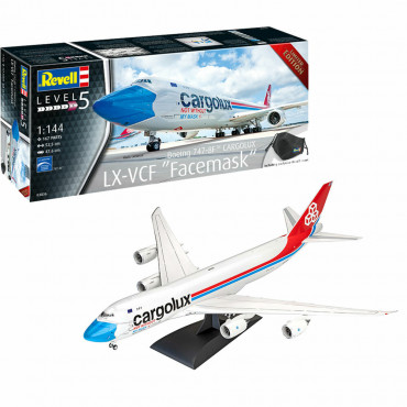 KIT PARA MONTAR REVELL AVIÃO BOEING 747-8F CARGOLUX LX-VCF "FACEMASK" EDIÇÃO LIMITADA 1/144 167 PEÇAS REV 03836.