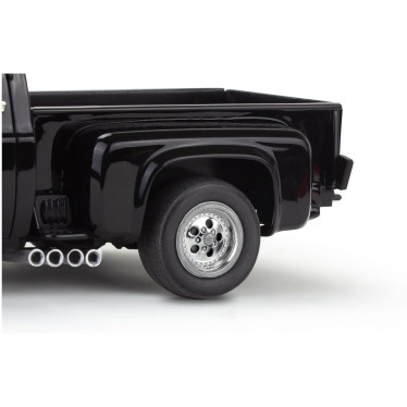 - Reprodução fiel da clássica picape Chevrolet "squarebody" com caçamba escalonada e porta traseira de abertura