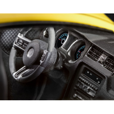 Kit modelo para o carro esportivo dos EUA em um design retrô atraente e seção dianteira e traseira típica, cujo motor Boss de 5,0 litros produz 450 cv (331 kW).