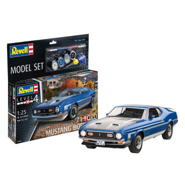 KIT PARA MONTAR REVELL MODEL SET - FORD MUSTANG BOSS 351 1971 1/25 129 PEÇAS - COMPLETO COM TINTAS COLA E PINCEL - REV 67699.
