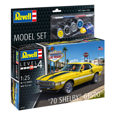 KIT PARA MONTAR REVELL MODEL SET SHELBY MUSTANG GT500 1970 1/25 112 PEÇAS COMPLETO COM TINTAS COLA E PINCEL REV 67729